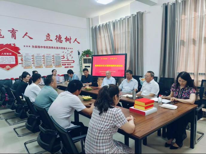 李明臣为荣休教师颁发“荣休纪念”奖杯,青年教师杜艳艳为荣休教师送上鲜花,表达了对3位教师的敬意和祝福。