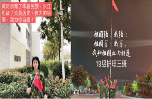 周职师生纷纷写下对祖国的祝福,在我部特制的五星红旗展板前合影留念,表达自己的爱国之心,祝福祖国母亲的生日。