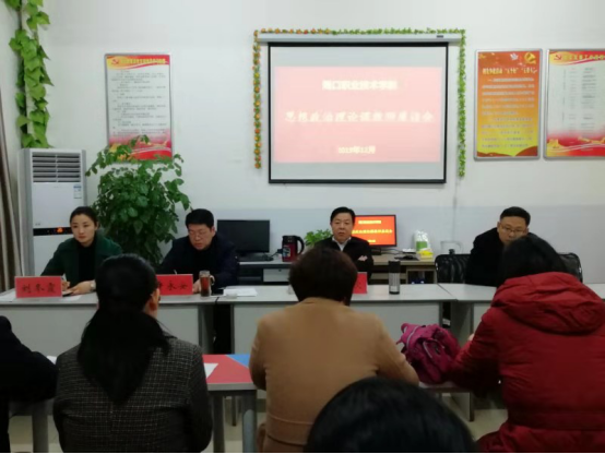 为深入推进“不忘初心、牢记使命”主题教育,引导广大党员在主题教育实施中使命在肩、主动作为,为了深入学习贯彻习近平总书记在全国学校思想政治理论课教师座谈会上的重要讲话精神,12月5日,我校召开思想政治理论课教师座谈会,校党委书记刘士欣、副校长许永安,党委宣传部部长皇甫超以及全体思想政治理论课教师出席会议。座谈会由刘冬霞主任主持。全体党员及老师参加了此次会议。