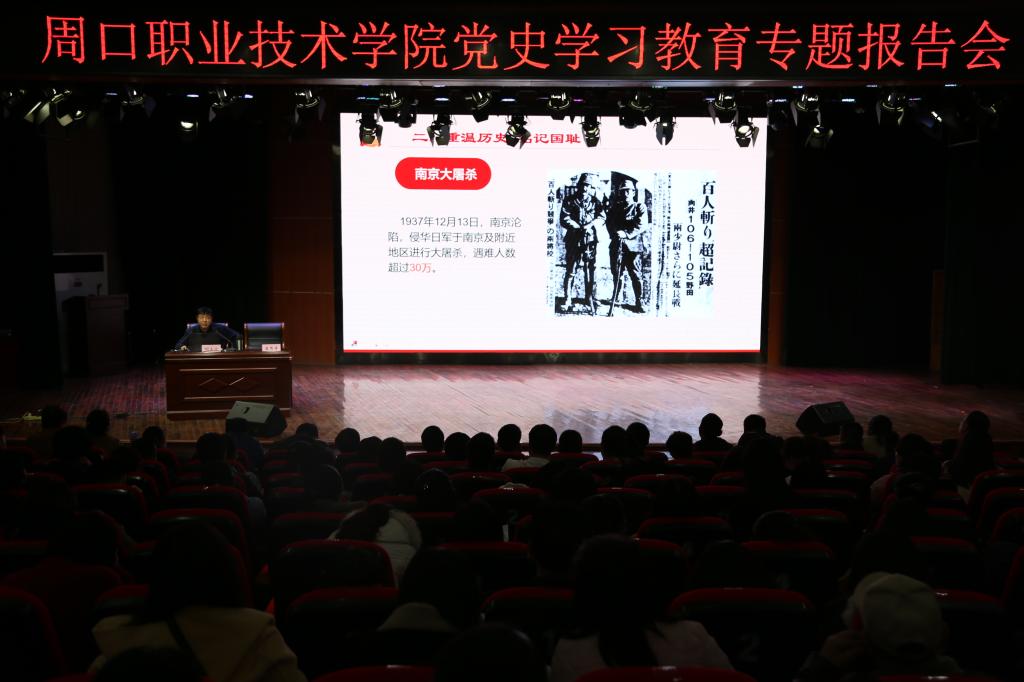 为深入学习贯彻习近平总书记在党史学习教育动员大会上的重要讲话精神,3月24日下午,学校在开元校区砺德厅举办党史学习教育专题报告会。校党委书记刘士欣做题为“学四史 守初心 担使命”的报告。思政部主任、学生处负责人刘冬霞、各二级院(部)学管副院长、学管办主任、19级20级全体辅导员、全体学生干部以及学生党员代表800余人参加了报告会,报告会由副校长李秀萍主持。
