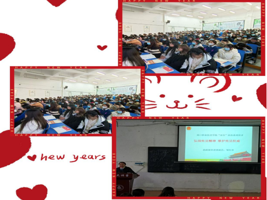 我校思政部教师、“双百”法治宣讲团成员邹红双老师在开元校区作《弘扬宪法精神,维护宪法权威》专题报告。邹老师从宪法的地位,我国宪法的发展历史,宪法的构成,宪法的基本原则,以及宪法和同学们的关系方面进行了宣讲。邹红双老师的报告内涵丰富、论述深刻、逻辑严密、系统完备,使在场的师生增长了法治理论知识,增强了走社会主义法治道路的信心。