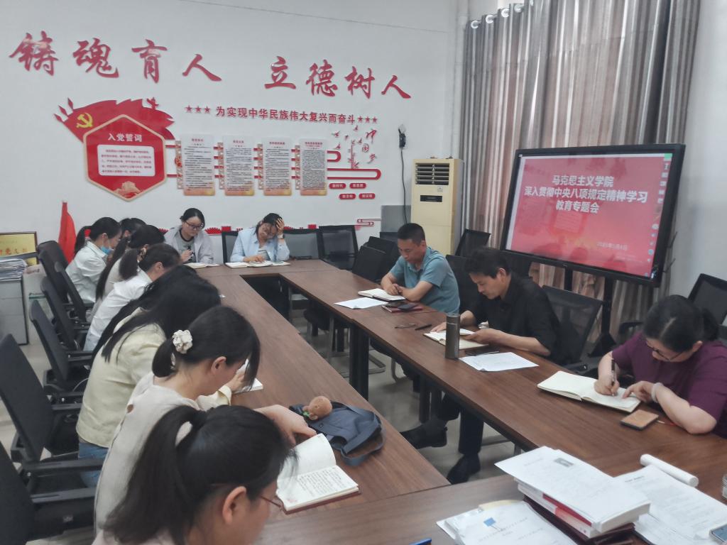 5月6日下午,人人精品无人区亚洲精品党支部在党员活动室召开深入贯彻中央八项规定精神学习教育专题会。学院党支部书记贾涛主持会议,全体党员教师参会。