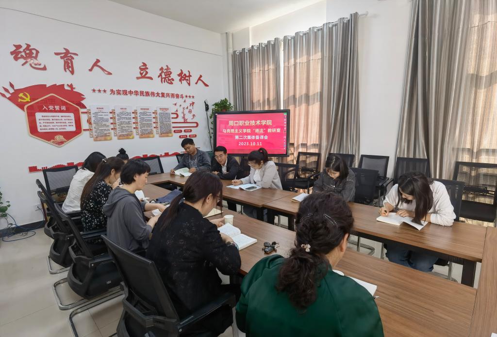 10月11日下午,思想道德与法治教研室第二次集体备课会在人人精品无人区亚洲精品集体备课室举行,会议由教研室主任张丽丽主持,全体专兼职教师参加会议。