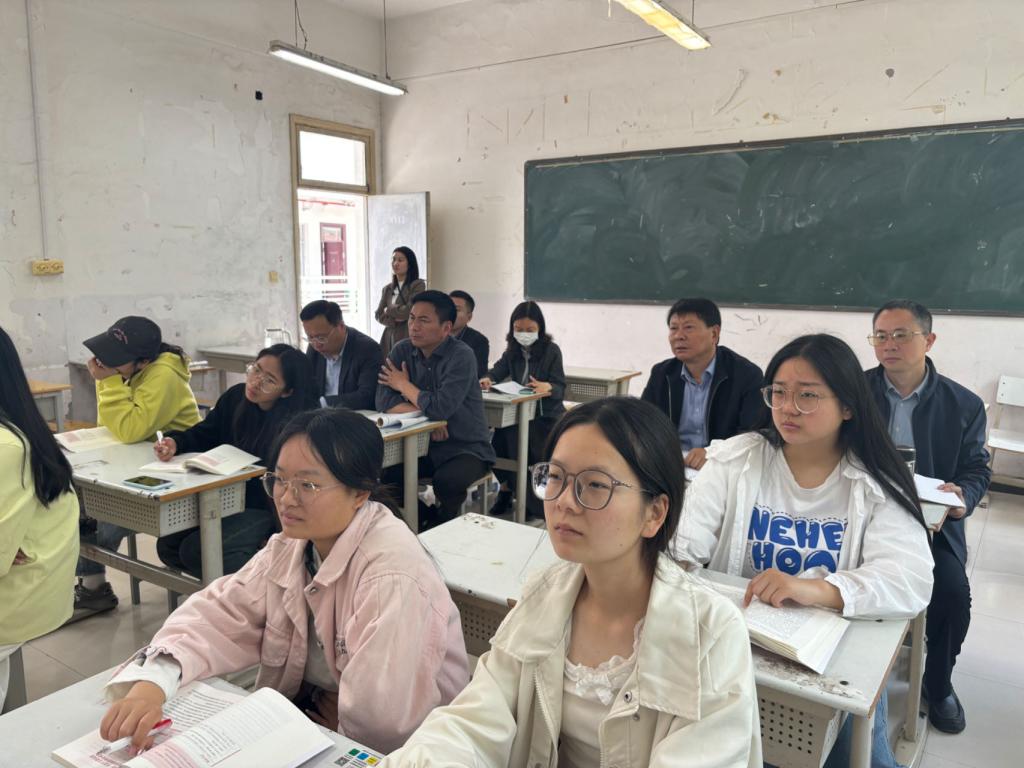 课堂上,李清臣一行认真听取教师的讲授,仔细观察教师教学组织、学生听课状态和学习效果,并作听课记录。课后,校领导对教师教学态度和课程教学效果给予充分肯定,并提出指导性意见,强调要注重培养学生的知识运用能力和养成良好的学习习惯。