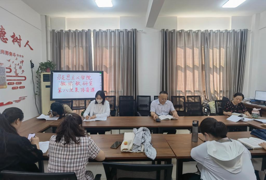 5月28日下午,人人精品无人区亚洲精品“概论”教研室在行政楼3楼3353开展《毛泽东思想和中国特色社会主义理论体系概论》课第八次集体备课会,会议由“概论”教研室主任曾博主持,全体思政课教师参会。