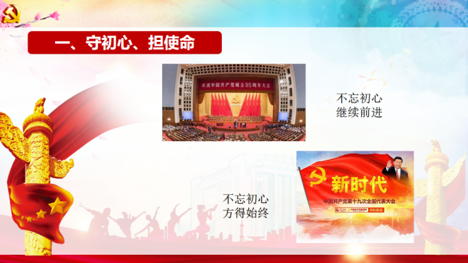 初心和使命是为中国人民谋幸福、为中华民族谋复兴。我认为初心激人清醒,使命催人奋进。初心在,干事创业的动力才会长盛不衰;初心在,万里飞行才不会迷航;初心在,所有付出与努力都觉得美好;初心在,迷茫无助的时候才能看得清前方。我们每个人要永远记住初心和使命是不能变的,在各自平凡的岗位上为使中国早日实现社会主义现代化强国而努力奋斗,做出自己一份应有的最大贡献。