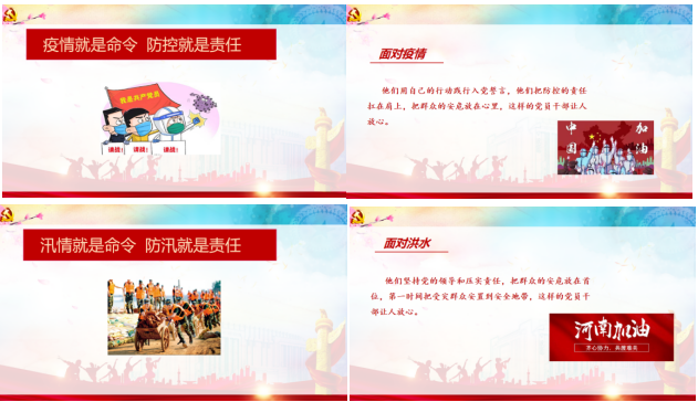 疫情就是命令,防控就是责任。面对疫情,他们用自己的行动践行入党誓词,他们把防控的责任扛在肩上,把群众的安危放在心里,他们不为功名利禄,不计生死,不畏辛劳,只为心中的那一份责任与担当,只为我们守卫着那一方净土,这样的党员干部让人放心。