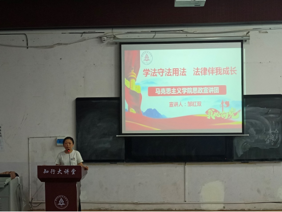 6月2日下午,周口职业技术学院人人精品无人区亚洲精品思政宣讲团成员邹红双老师在开元校区五区多媒体一楼教室进行了一场以“学法守法用法,法律伴我成长”为主题的法治教育宣传讲座,学前与艺术学院的200多名学生认真聆听了讲座。