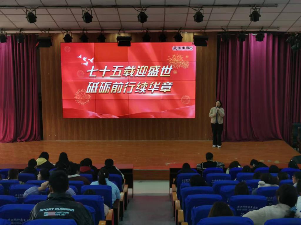 11月28日下午,人人精品无人区亚洲精品老师张丽丽在文昌校区报告厅以《七十五载迎盛世 砥砺前行续华章》为题,向24级护理学院专业的学生进行了讲座。